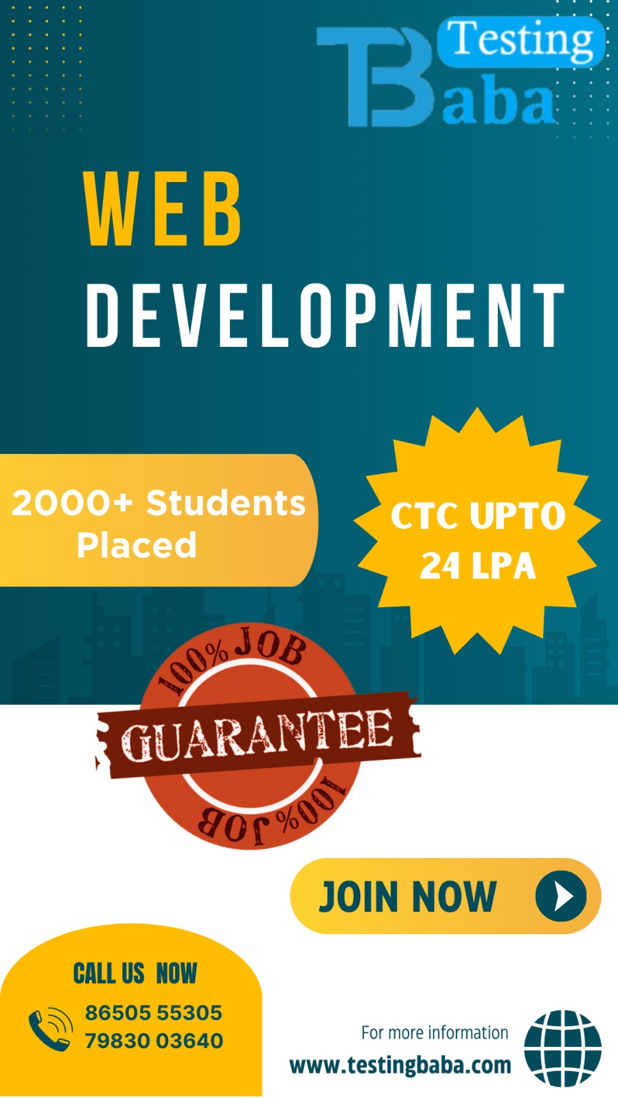 A student enrolled in Java Training bagged a package of 7.5 LPA as an initial salary, from a top brand, through the Placement Assistance provided by Testing Baba. This fact proves the commitment and quality of the Testing Baba and its Placement wing. Testing Baba has been the best training company, providing effective six months of industrial training and internship programs through online and offline modes. It holds an excellent placement record in top MNCs, enabling the students to get numerous opportunities to prove themselves.